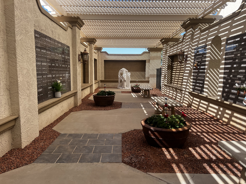 Our Memorial Garden is located behind our South Building, 23914 S. Alma School Rd. and is open 24 hrs a day.